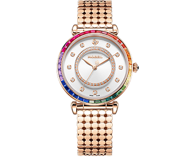 制表师凭借精湛技艺,将璀璨水晶、天然贝母、珍贵钻石...覆于表盘,以材质之美映耀女性魅力。